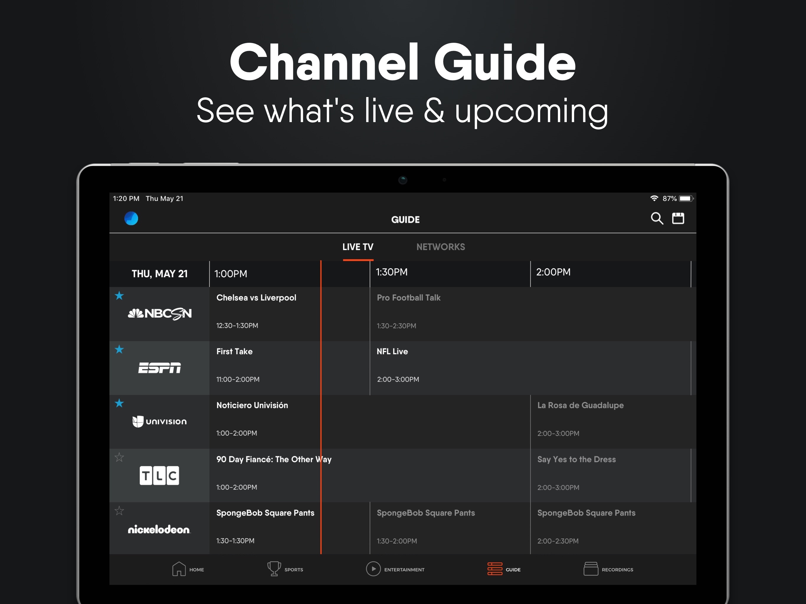 fuboTV’s base package, fubo Standard, features a broad mix of 100+ channels, including 43 of the top 50 Nielsen-ranked networks across sports, news and entertainment (Primetime A18-49).